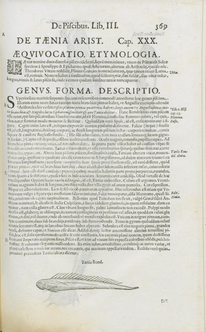Noir et blanc - Zwart en wit Oeuvre : animal marin zeedier poisson vis [Cinaedus Rondeletii & Bellonii] Langues : Latin (lat)