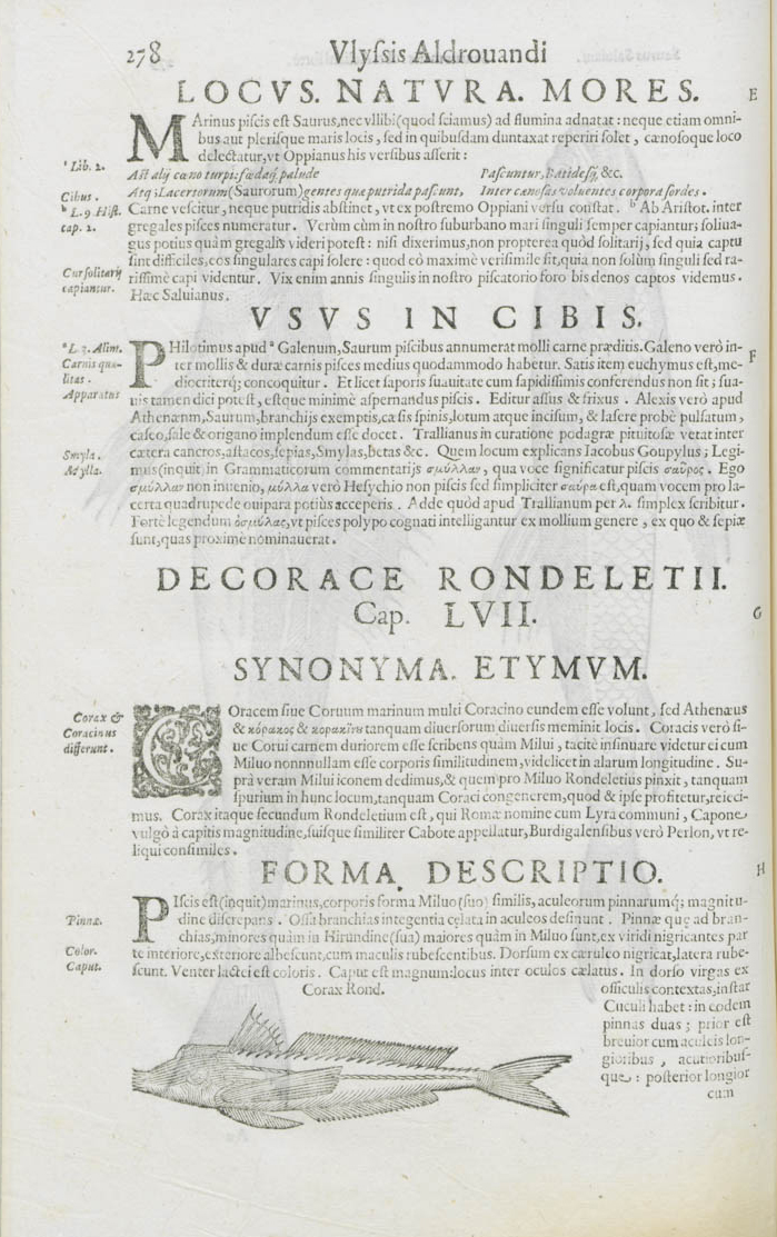 in Ulyssis Aldrovandi philosophi et medici bononiensis. De piscibus libri V. et de cetis liber unus. Ioannes Cornelius Uterverius in Gymnasio Bononiensi Simplicium medicamentorum professor collegit. / Ulisse Aldrovandi