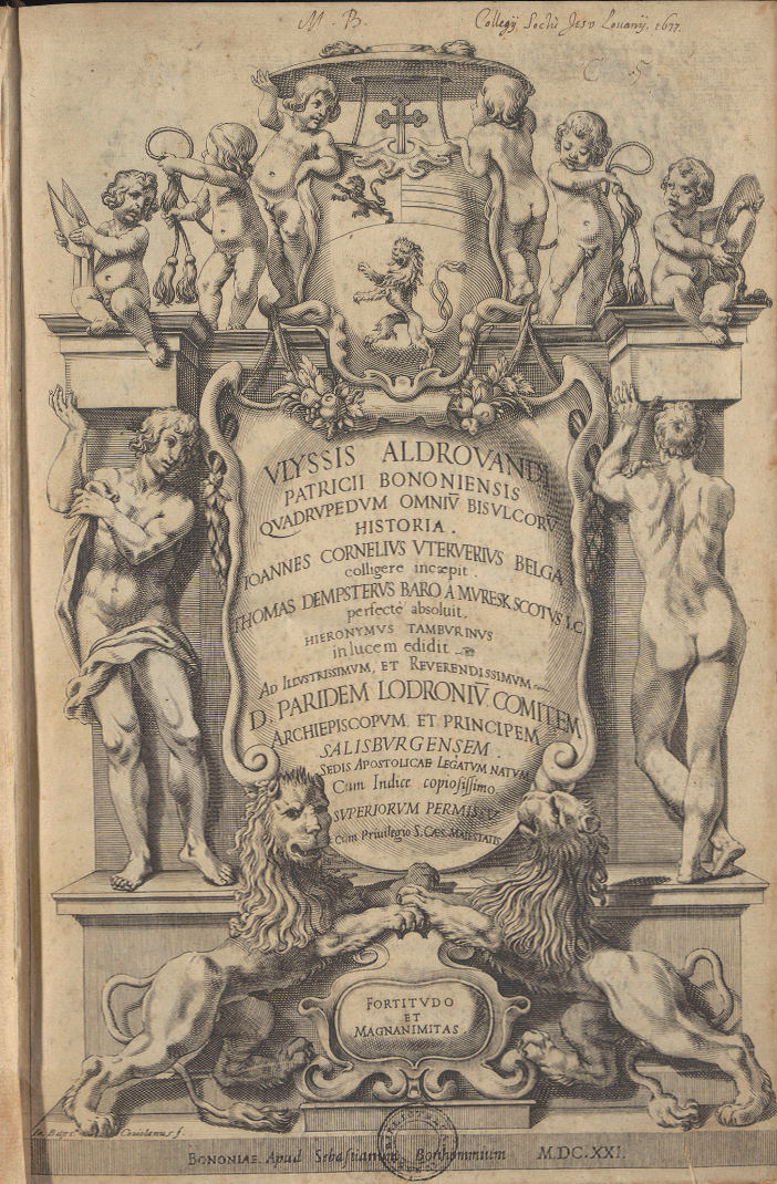 in Ulyssis Aldrovandi [...] Quadrupedum omniu[m] bisulcoru[m] historia. Ioannes Cornelius Uterverius belga colligere incaepit. Thomas Dempsterus Baro á Muresk scotus I.C. perfecte absoluit. Hieronymus Tamburinus in lucem edidit. Ad [...] Paridem Lodroniu[m] comitem archiepiscopum et principem Salisburgensem [...] / Ulisse Aldrovandi